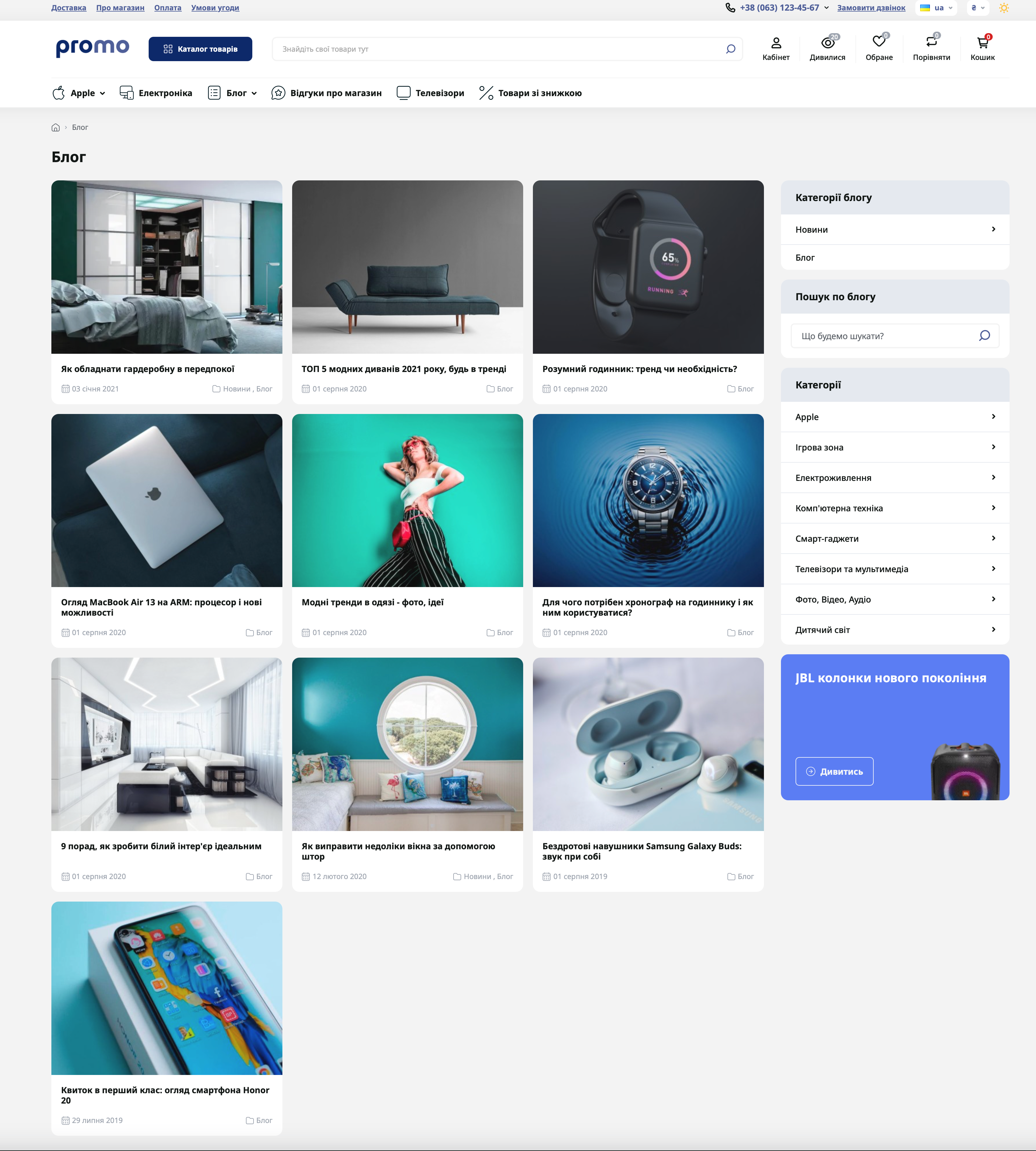 - "Кількість статей" - дозволяє встановити кількість статей, які будуть виводитися на сторінках категорій блогу. Рекомендовано вводити парне значення;