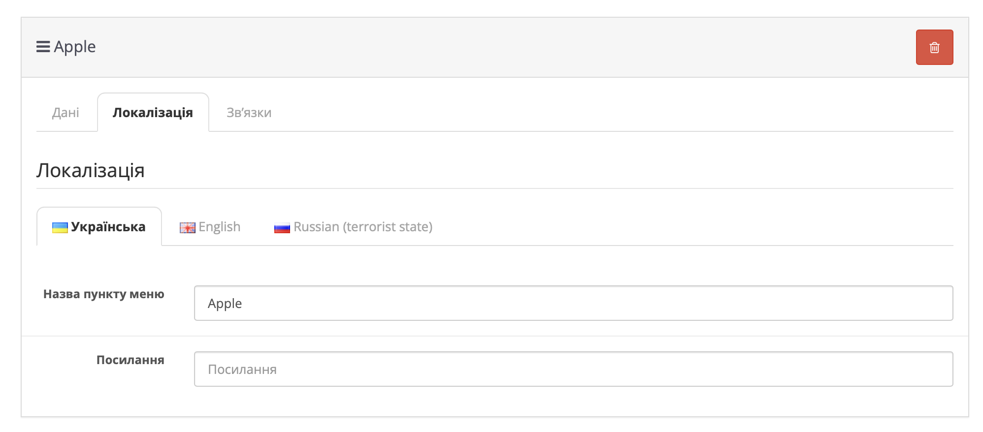 - "Текст кнопки відкриття менюдозволяє ввести текст для кнопки в шапці сайту, яка відкриває меню десктопної версії сайту;