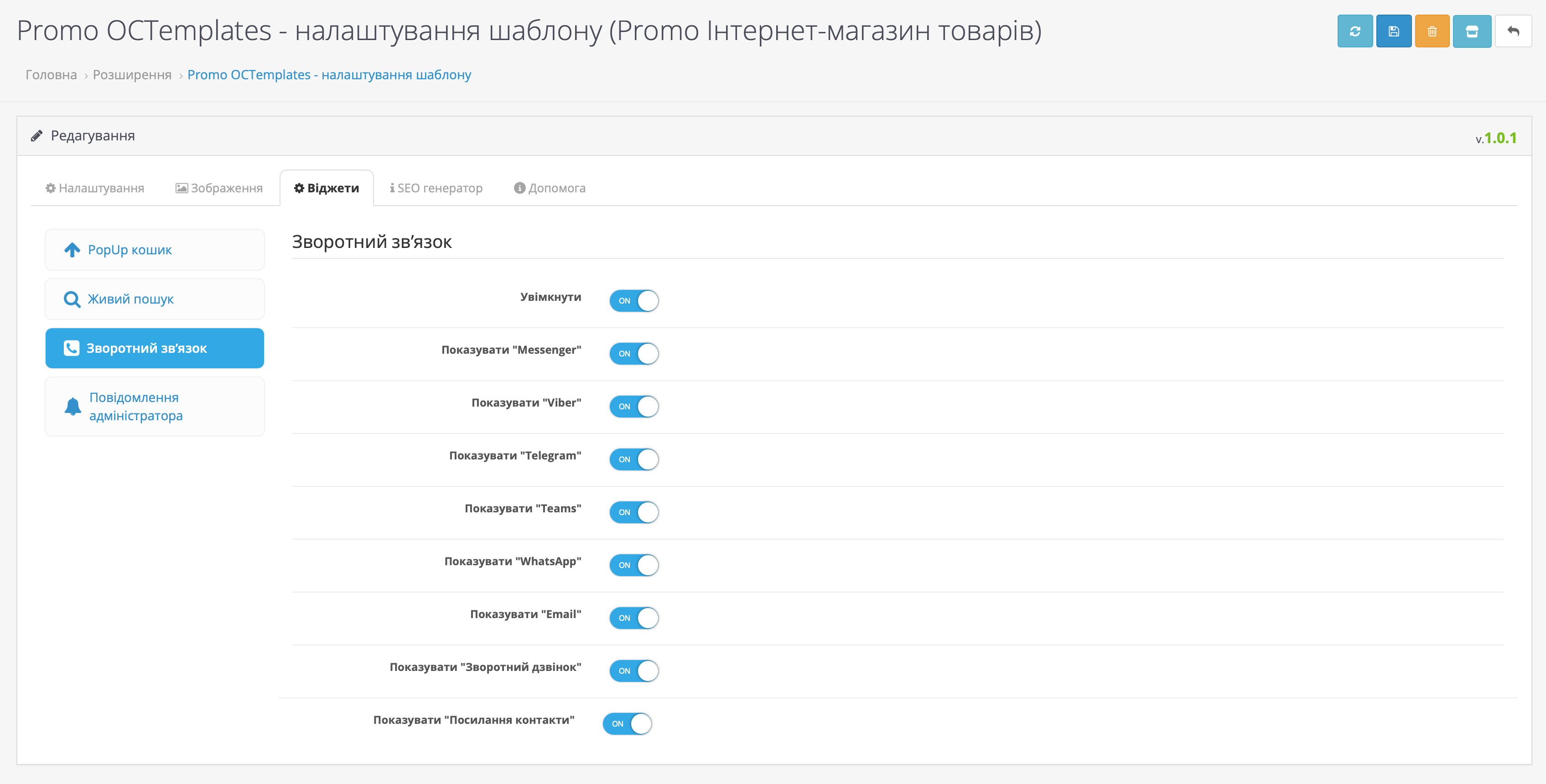 - "Показувати "Зворотний зв'язок" дозволяє увімкнути\вимкнути відображення посилання на "Зворотний дзвінок";